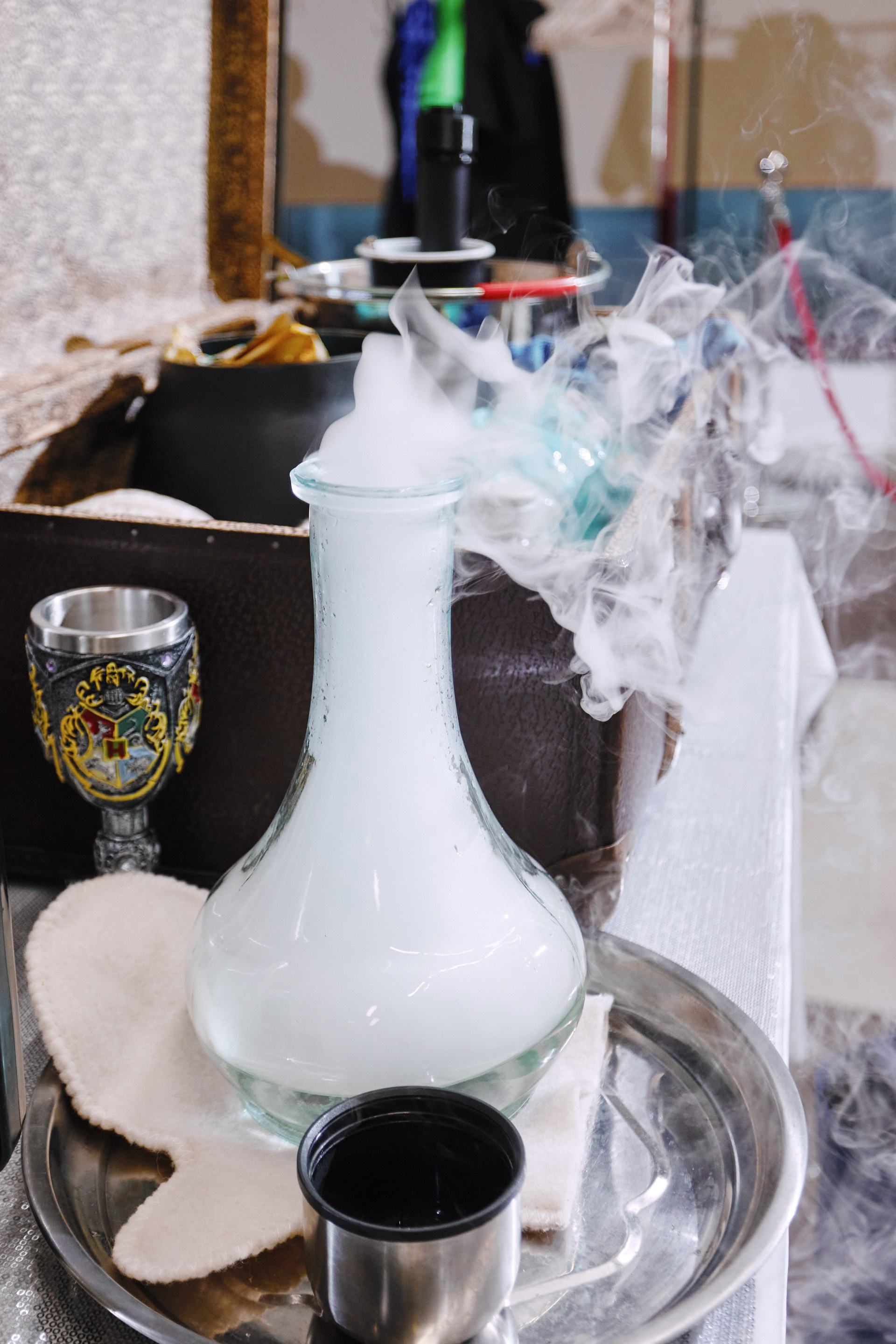 🔬 Что будет: — Эффектные опыты с настоящим жидким азотом, дымом и зрелищной химией — Волшебные колбы, заморозка предметов, зелья и загадки — Атмосфера настоящей магии и при этом — живой науки — Игра с воображением: дети верят в происходящее и вовлечены от начала до конца