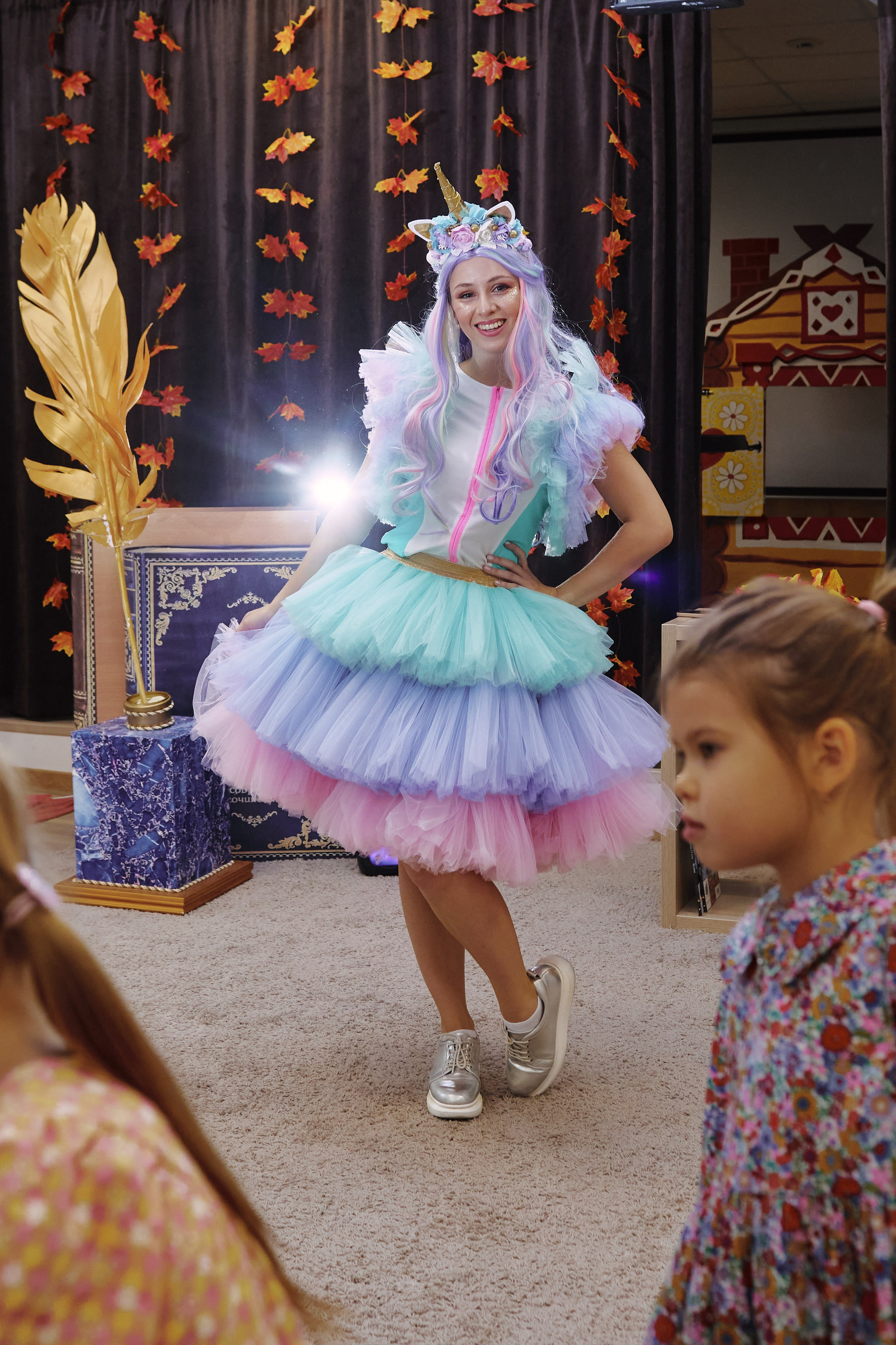 В этот день к имениннице прилетит сама Единорожка — добрая сказочная героиня, которая откроет двери в мир чудес и волшебства.